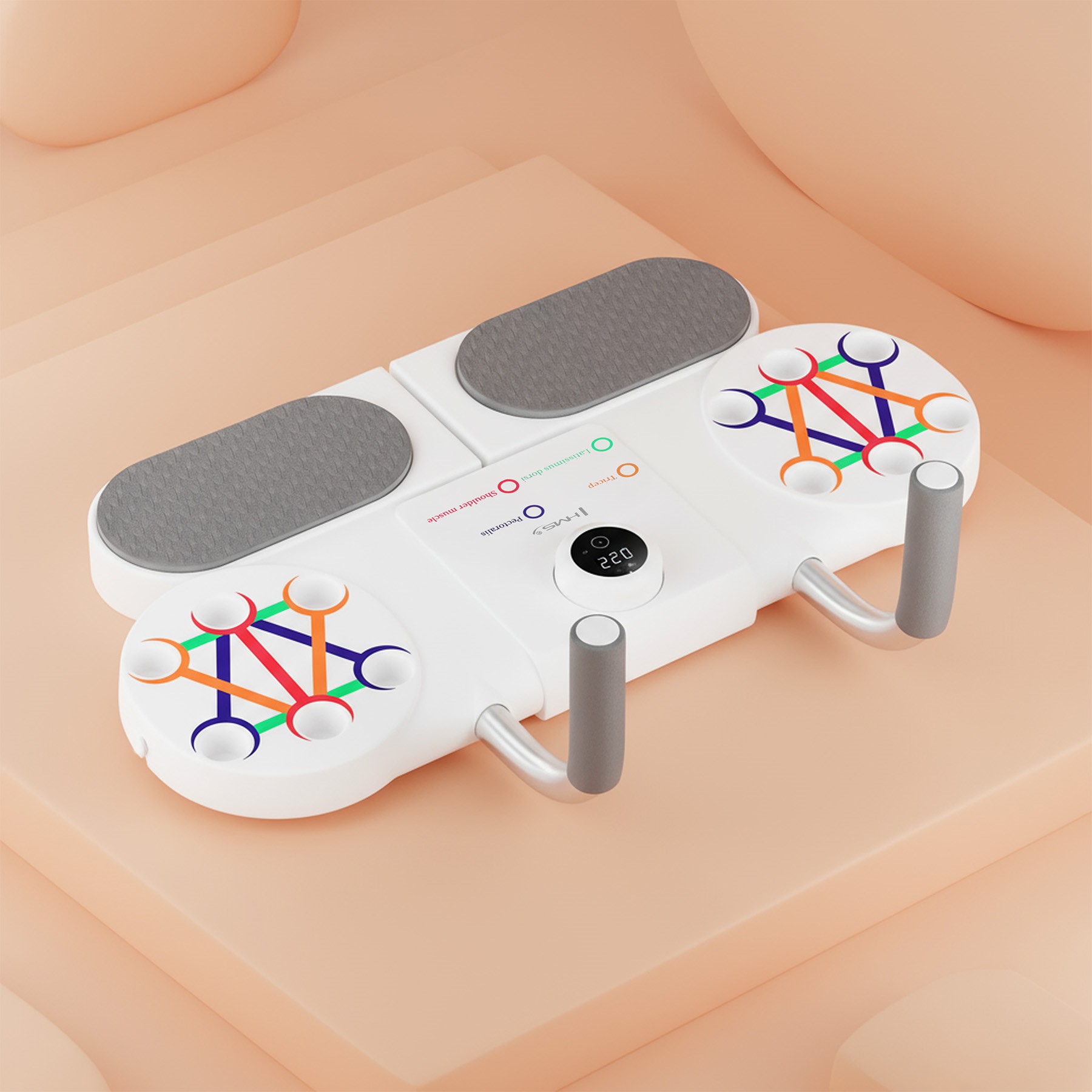 Jeden, kompaktowy przyrząd do skutecznego treningu w domu. DBP03 łączy stabilną deskę do planku, uchwyty do pompek z wieloma ustawieniami oraz inteligentny licznik z optycznym (IR) czujnikiem zbliżeniowym, który automatycznie zlicza powtórzenia.