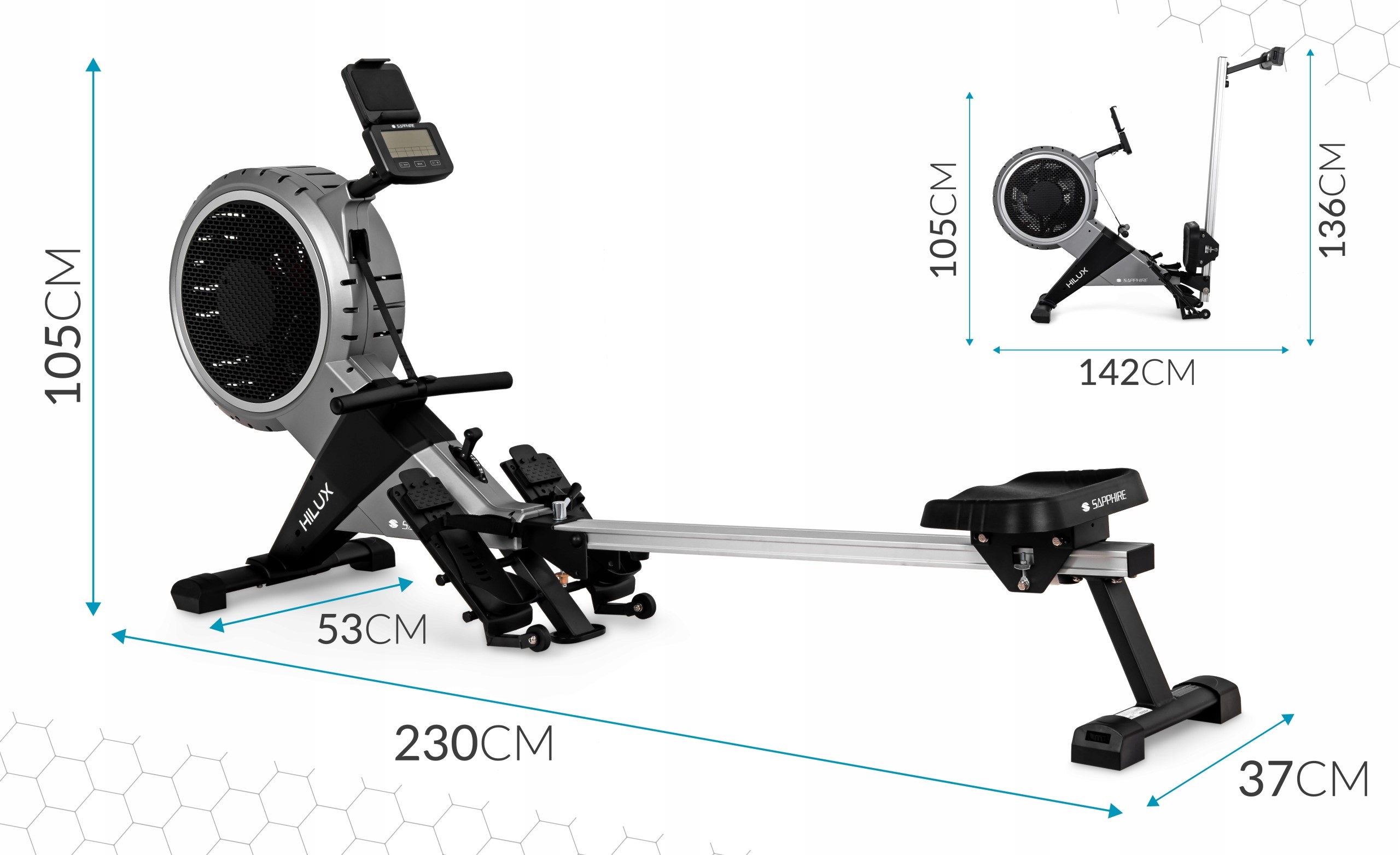 Wioślarz Sapphire HILUX pozwala odwzorować ruch wioślarski, który jest jednym z najefektywniejszych form treningu. Ćwicząc na naszym urządzeniu, zaangażujesz praktycznie wszystkie najważniejsze partie mięśniowe, co z pewnością przełoży się na efekty ćwiczeń! Nie czekaj, popraw kondycję i spal zbędne kalorie z wioślarzem marki Sapphire!