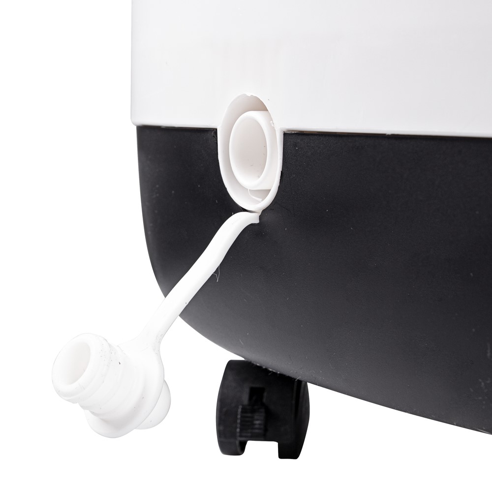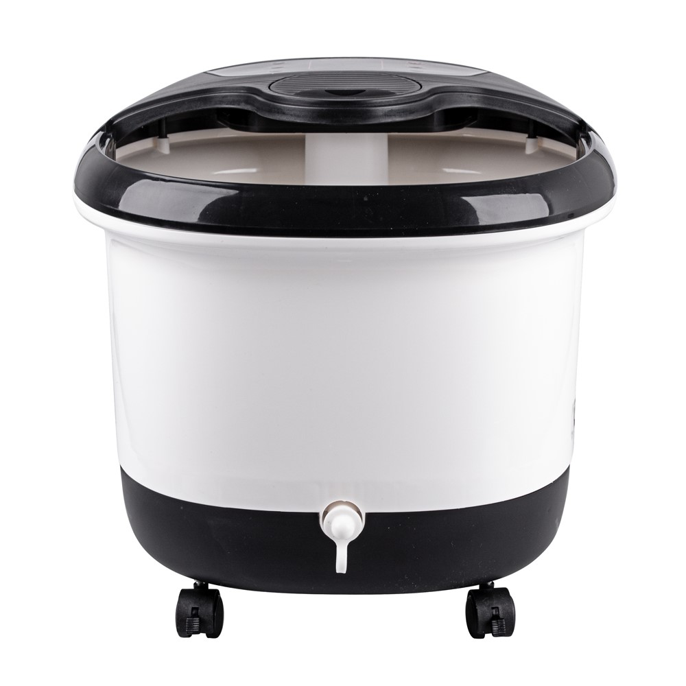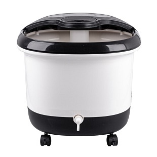 Podczas kąpieli bąbelkowej można również użyć wałków do masażu i innych wypustek na dnie pojemnika. Skutecznie stymulują punkty na stopach i zapewniają przyjemny masaż w domu. Po prostu połóż stopy na rolkach i masuj je. Możesz wybrać jeden z trzech programów masażu, a podczas masażu możesz zadbać o swoje stopy pumeksem. Masażer do stóp inSPORTline Kurkisspa jest łatwy w użyciu i ma uchwyt do bezproblemowego przenoszenia. Jeszcze łatwiej jest przetransportować pełny pojemnik za pomocą kółek obrotowych. Po użyciu można po prostu spuścić wodę dzięki kratce odpływowej. Zanurz się w idealnym relaksie w domu dzięki urądzeniu do hydromasażu stóp.