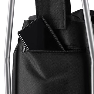 Dla większej funkcjonalności wózek został wyposażony w kieszeń zapinaną na zamek błyskawiczny, umieszczoną z tyłu torby. To idealne miejsce na przechowywanie portfela, dokumentów, kluczy lub innych drobnych przedmiotów, które chcesz mieć zawsze pod ręką i bezpieczne.