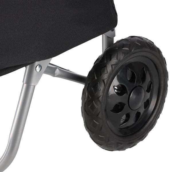 Wózek NC17106 posiada ergonomiczną rączkę, która ułatwia prowadzenie, nawet po nierównym terenie. Dzięki niej możesz bez problemu manewrować wózkiem zarówno na chodniku, jak i w sklepie. Stabilne kółka z tworzywa PCV zapewniają płynną jazdę i są odporne na ścieranie.
